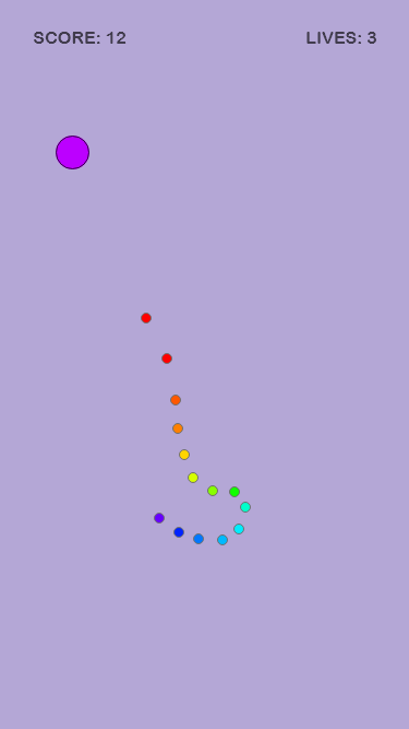 Kings snake is a completely new and original take on the classic snake game. In this version you move freely around the space with each body part being a loosely connected circle dragging behind the rest. The objective is to score as many points as you can. Just like in the original snake, you lose by crashing into your self, however here you may be able to squeeze through the spaces within your self.